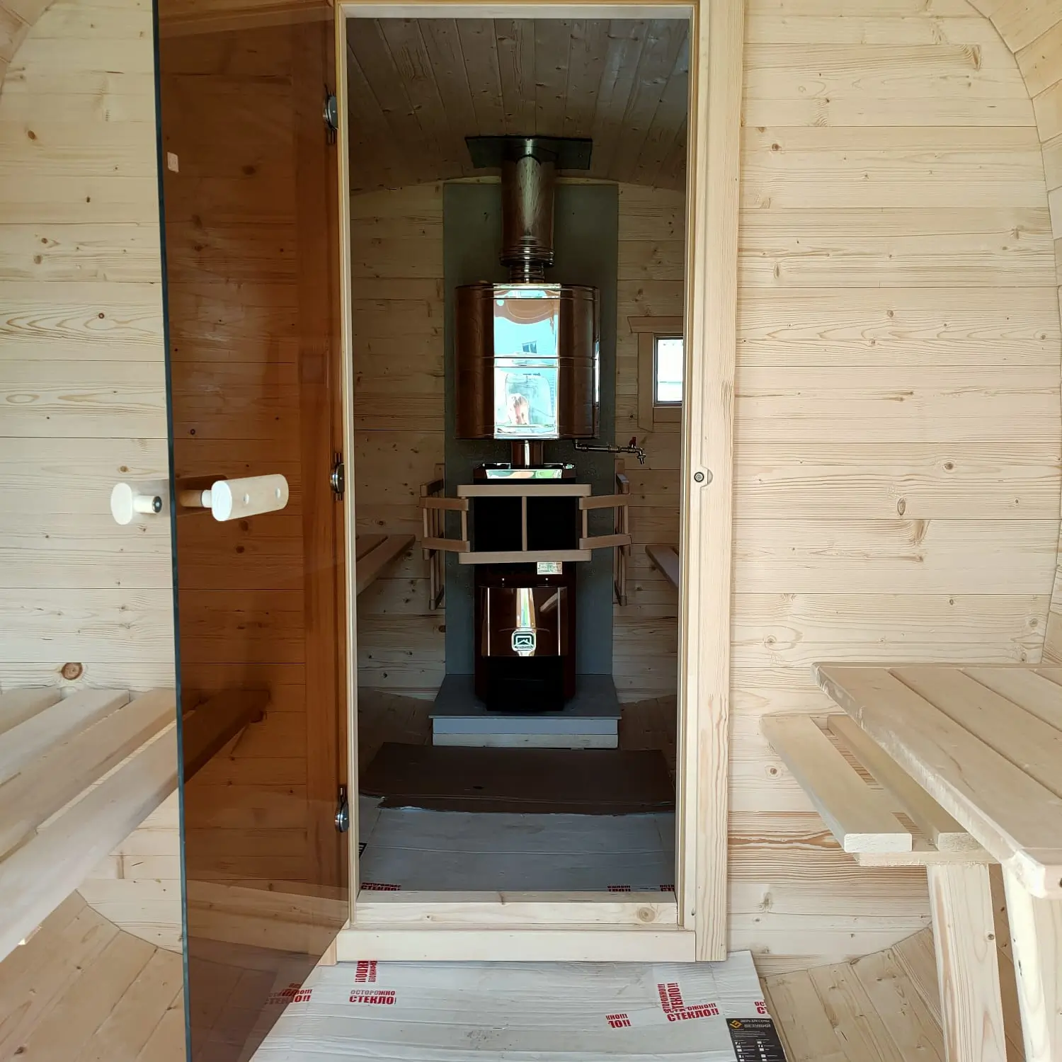 - Внутренняя дверь бани остекленная