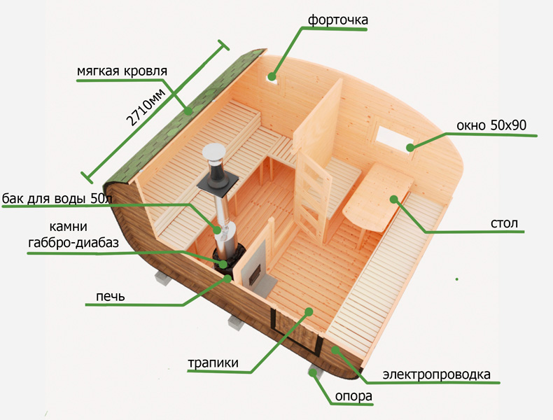 - Каркас бани из профилированного бруса толщиной 45мм камерной сушки 10-12%.