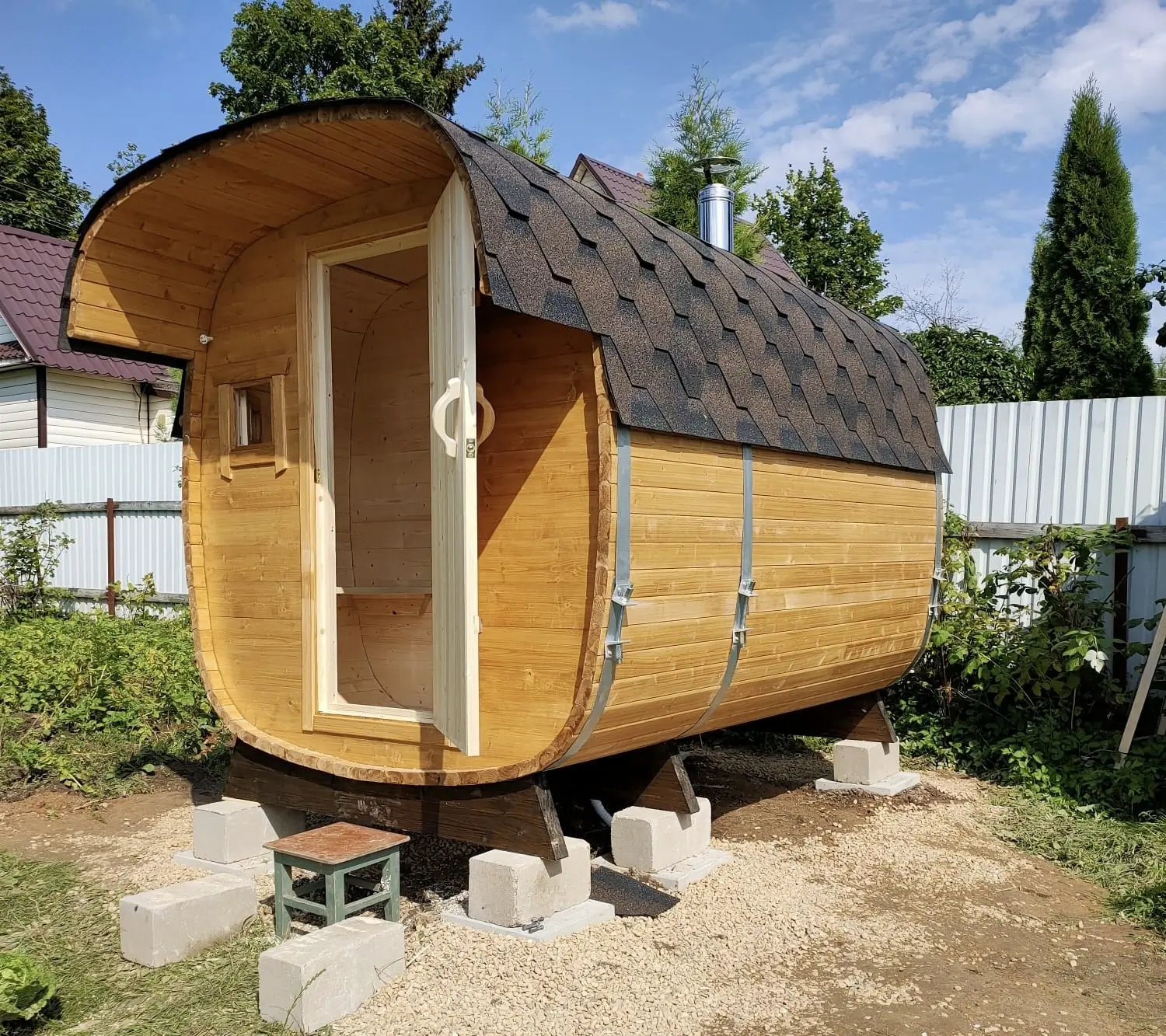 • Бетонные блоки под баню бочку в качестве фундамента