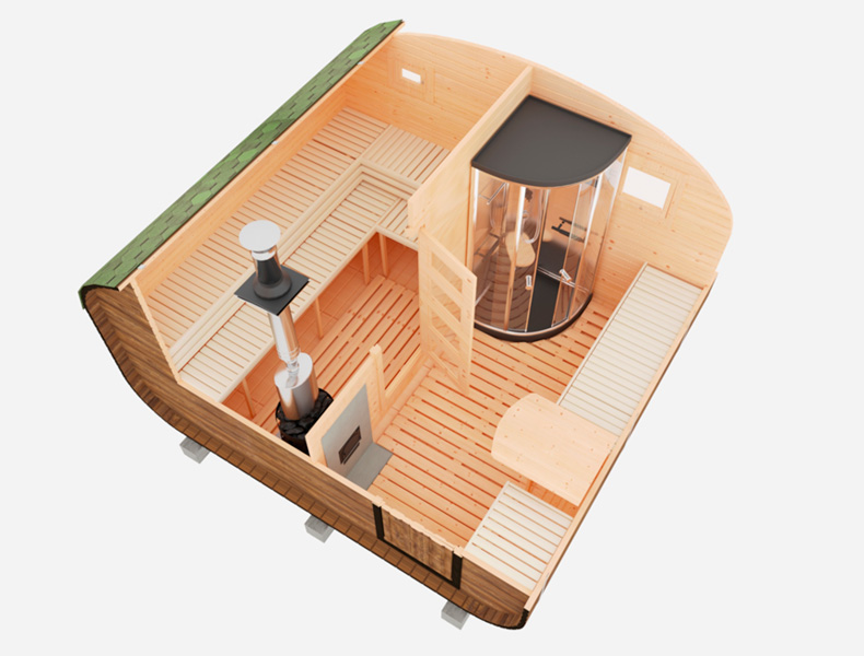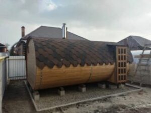 • Каркас бани из профилированного бруса толщиной 45мм камерной сушки 10-12%.