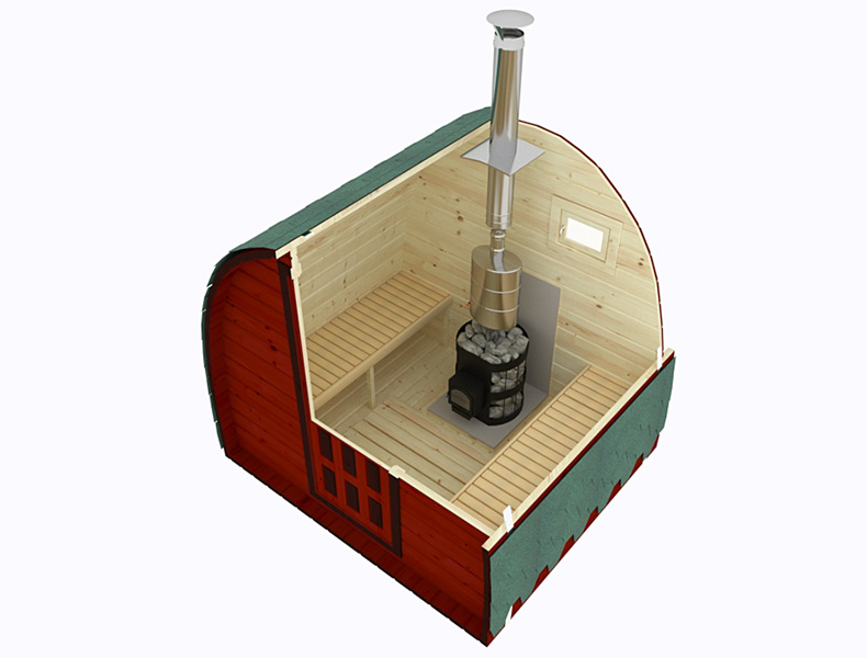 • Каркас бани из профилированного бруса толщиной 45мм камерной сушки 10-12%.